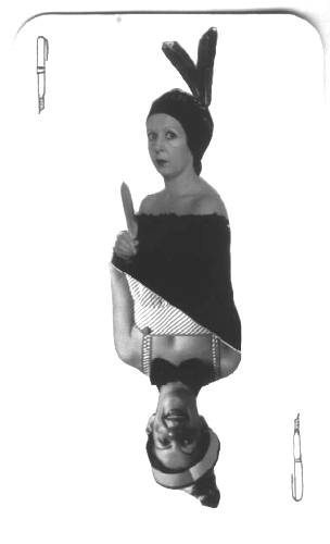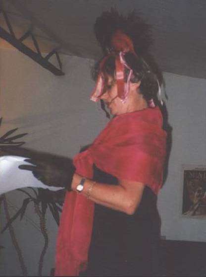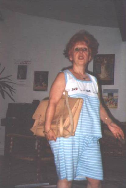 L'été suivant cette mémorable autant qu'éphémère expatriation, je commençais de concocter une pièce sur mesure pour notre G.R.A. Car il faut savoir, tout de même, que trouver dans le répertoire, un texte pour une troupe composée de dix femmes et un seul homme (de 87 ans) n'était pas chose aisée. Je comptais ouvrir notre réunion de rentrée par une lecture de cette Inauguration (dont l'action se déroulait dans une maison de retraite, sujet assez glauque pour museler ma verve comique). Mais notre tyrannique metteur en scène me refusa ce plaisir. Une nouvelle fois censurée, et pas du tout prête à participer à être de la prochaine distribution - une tragédie pourtant : Les Troyennes, dans leur version sartrienne - je tirais ma révérence. Je n'ai, depuis, intégré aucune autre troupe, mais j'ai encore été censurée, en 2001, lors d'un conseil municipal (voir Elections dans la rubrique correspondance). Il se pourrait qu'ayant tout mon temps disponible dès que je serai en retraite (le jour de mise en ligne de ce site) je songe à sévir de nouveau dans quelque autre troupe d'amateurs ou de professionnels, en tant qu'auteur ou comédienne, comme il plaira. Bien sûr il faudra éviter de me proposer des rôles de jeune fille anorexique ou d'ardente gitane danseuse de flamenco, car les rides, les kilos et mes articulations rouillées m'y rendraient peu crédible... Mais pour l'écriture, avis aux populations, je peux être comique ou tragique, conforme à cette photo (dont j'accompagnais la première de mes nouvelles qui fut publiée). C'était un auto-portrait en forme d'avertissement aux amateurs de mes romans burlesques : dans mes textes courts, on rirait beaucoup moins...
