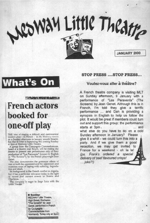 Nous partîmes cependant nous exhiber de l'autre côté de la Manche, invités par le Medway Little theatre de Rochester (ville célèbre pour son festival Dickens). Je ne résiste pas à faire figurer ici leurs annonces.