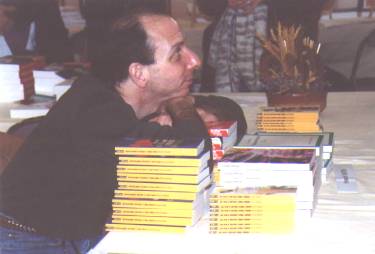 En novembre 2001, Howard eut la gentillesse d'accepter mon invitation pour un salon du livre dont je fus responsable durant ma brève carrière de conseillère municipale. Voici deux photos prises ce dimanche d'automne où nous attendions nos lecteurs derrière nos piles :