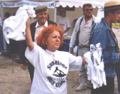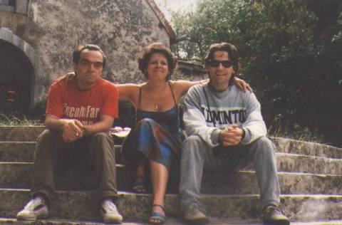 En repérages (juin 1988) : Simone Arese entre Alexandre Adabachian (à sa droite) et Charles Tible, devant la chapelle sylvestre de Notre-Dame-de-Lorette, à Port-Lesney6