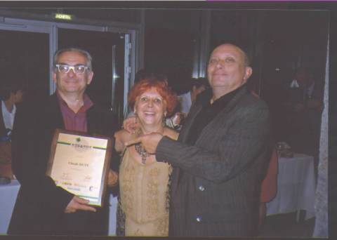Cette œuvre, qui fut un temps en discrédit, comme tous les tableaux du genre pompier, illustrait un récit légendaire médiéval assez terrible. En sus des personnages humains, Claude donna un fort beau rôle à la Seine, qui séduisit tant de peintres avant lui (voir rubrique Seine en scène). Il s'est, depuis cette belle célébration de notre fleuve, illustré dans deux longs-métrages ayant connu un succès mérité : Cheveux gras, filles perdues et Bienvenue au gîte. Nous figurons ensemble sur cette photo de septembre 2003, en compagnie de Philippe Davenet, lors d'une remise de trophée régional