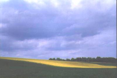 Elle vécut encore une quinzaine d'années, solitaire dans la ferme où des petits-enfants blonds, qui ne parlaient pas sa langue, vinrent parfois la distraire, à Pâques, au mois d'août. Puis, un jour de mai, prise d'une grande lassitude, elle se coucha au milieu de l'après-midi, son regard tourné vers la fenêtre, le portail, le champ qu'elle avait refusé de céder au cousin. Le colza en fleurs y semblait une mer jaune, houleuse, phosphorescente sous le ciel plombé. Et le vent d'ouest, brassant la chaleur d'un orage imminent, poussait vers la ferme, vers le lit, tous les parfums de cet océan soufré. La femme regardait intensément, dans l'attente d'un grondement, d'une lueur blanche zébrant l'horizon outremer, d'un nuage crevant sur la plaine ; dans l'attente aussi d'une révélation, d'un mystère enfin éclairci. Un coup de tonnerre claqua, dans le même temps qu'une lumière brève, fulgurante, traversait le ciel, tombait sur le champ, illuminait la moribonde. Et, dans ce fracas, dans cette lumière, elle comprit ce qui l'avait toujours vissée à sa terre natale : c'était, inavouable, l'amour d'un champ qui fleurissait jaune. Elle n'avait vécu que pour retrouver, chaque saison, cette couleur intense, ce parfum unique. Ayant compris cela, elle mourut, le champ enfin effacé de son regard. Dans la cour, le chien tirait sur sa chaîne, au passage du chat, et un papillon fuyait la pluie, dont les premières gouttes martelaient le colza.