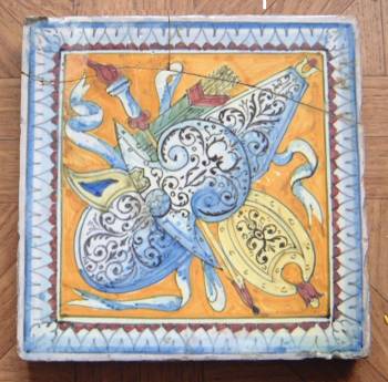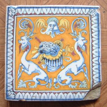 Un ami m'offrit très spontanément ces carreaux, qu'il avait trouvés dans un grenier, et dont il ignorait tout. J'écrivis cette nouvelle pour le remercier. Et comme je suis un auteur sérieux (oui, oui !) , en préambule, je menais une enquête pour connaître l'origine de ces carreaux, consultant artisan faïencier, experts auprès d'antiquaires, puis Internet. Dans un premier temps, on me les prétendit datant de la Renaissance, et je situais mon texte à cette époque, même si, dans un second temps, on m'assura qu'ils étaient des copies de carreaux du XVI°, faites dans une fabrique de Desvres ayant fonctionné entre 1860 et 1915. L'étonnant est qu'ayant commencé ma nouvelle avant d'en avoir terminé de ces recherches (mon sérieux est souvent bousculé par mon impatience !) je crus inventer ce personnage de veuve, qui exista bien, au château d'Oiron (dont les carreaux sont célèbres, et dont la marque des miens sembla initialement attester cette origine). Elle s'appelait Hélène de Hangest, et son mari Artus Gouffier ; leur fils, écuyer d'Henri II aurait servi de modèle au marquis du Chat Botté . Comme quoi : on n'invente jamais rien, et on en revient toujours aux contes...
