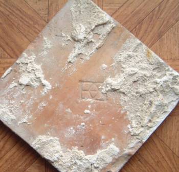 Mais quel internaute saura me dire exactement si cette marque de fabrique des carreaux (ci-dessous) est finalement celle du Moulin de Hangest ( 1525-1560, disparu, mais proche de Saint-Porchaire et du château d'Oiron) ou les initiales entrecroisées d'Henri II et de Diane de Poitiers, ce qui orienterait vers le château d'Anet où vécut la très célèbre maîtresse royale, que j'avais déjà rencontrée en rédigeant La Nuit d'Etelan, long monologue nocturne de Catherine de Médicis ?