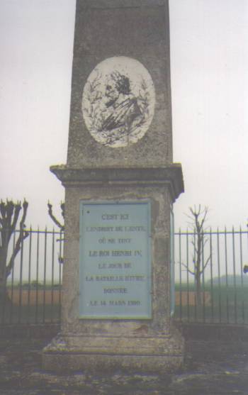 Malgré la fatigue de ma nuit et ma longue course, je n'ai pas dormi. J'écoutais cet étrange silence qui protégeait le Roi. Il a soudain été brisé par le galop d'un cavalier apportant la nouvelle que l'ennemi repassait la rivière d'Eure. Le Roi s'est levé. Un autre cavalier a suivi, démentant la nouvelle. Il était trop tard pour dormir encore. Le Roi est sorti dans la cour. Je l'ai aperçu par l'interstice de deux planches mal jointes. Il a mis son armure, est monté sur son cheval. Le canon a tonné trois fois, pour que chacun fasse seller, se tienne sur sa monture, gagne le champ de bataille. C'est Michaud qui m'a raconté tout ça, plus tard. Le Roi s'est enfoncé dans la lumière de l'aube, ayant coiffé un chapeau à blanc panache. Un chapeau de cent écus, avec une pierre d'améthyste et des perles. Un chapeau qu'on verrait fendre les rangs ennemis et qu'on suivrait pour une écrasante victoire. Moi je n'ai rien pu observer de cette bataille où s'affrontaient vingt cinq mille hommes et sept mille chevaux. Monsieur le Duc de Sully lui-même en ignora un moment l'issue quand, blessé pour la quatrième fois, il ne dut son salut qu'aux branches basses d'un poirier où il s'alla mettre à couvert. Le poirier peut-être, où, sans le témoignage de Michaud, on m'aurait pendu.