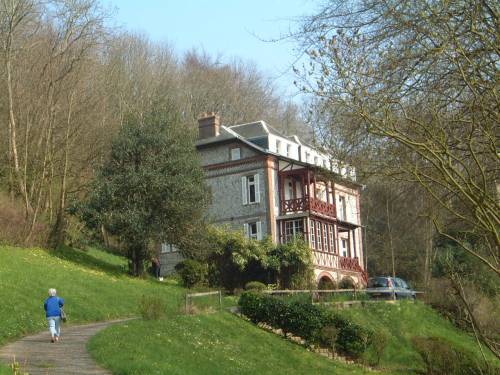 Auteur et web-master sont partis, en ce beau printemps 2007, mener l'enquête à Yport. La première piste leur semblait l'office de tourisme. Nous y entrâmes avec assurance, certains d'y trouver le premier des renseignements souhaités où était cette maison ayant appartenu à Albert Fourié ? Stupeur non seulement l'employée ignorait où pouvait être cette maison (dont nous avions, à sa décharge, momentanément oublié le nom), mais elle ne connaissait pas même le peintre. Elle essaya de joindre par téléphone quelques personnes plus savantes qu'elle, elle pianota également en vain sur son ordinateur avant de s'avouer finalement vaincue. Nous ressortîmes stupéfaits et, selon nos tempéraments dissemblables, tacitement choqué, et visiblement furieuse, mais bien décidés à arpenter ce petit village jusqu'à trouver la maison souhaitée. Quand je vis une petite pancarte indiquant Les charmilles, sur une barrière largement ouverte, la mémoire me revint ce devait être là ! Tentation de franchir la barrière, pour monter l'allée jusqu'à la maison. Allais-je y céder, malgré mon respect de la propriété privée et ma ... peur de chiens ? Aucun canidé de garde n'étant ni visible ni audible, je m'avançais, espérant que mon compagnon d'équipée saurait me défendre en cas d'attaque surprise d'un fauve. J'avais aperçu deux hommes penchés sur des travaux de débroussaillage près de la maison. Je me présentais, avec demande d'excuse préalable pour mon intrusion, à celui qui me semblait le maître et j'exposais ma requête. Ce charmant monsieur fut si ravi de ma curiosité pour le passé de sa maison (qui fut bien celle d'Albert Fourié) qu'il nous permit de la photographier, et nous convia même à y entrer. Nous étions grandement consolés de notre échec à l'office du tourisme, et nous tenons à encore remercier, ici, ce monsieur, d'une essence qui n'existe plus guère hélas.