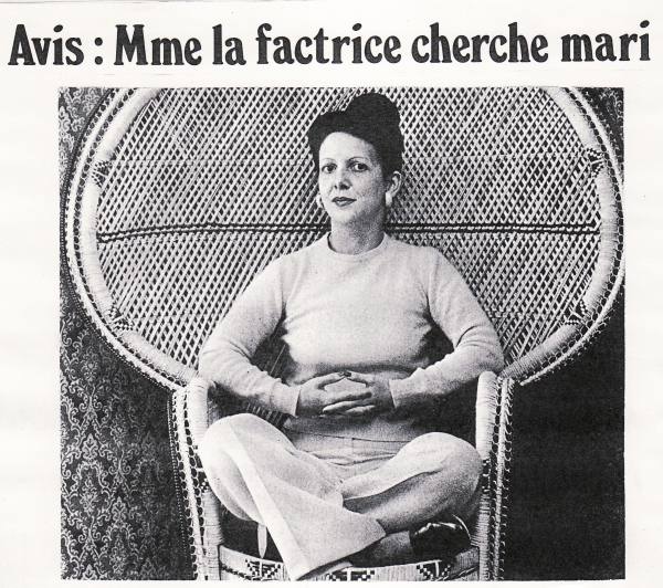 (...) Simone Arèse a réussi à faire de cette histoire simple une histoire drôle. Et à se glisser, elle, la bibliothécaire de Rouen, dans la peau de la factrice d'un petit village du Jura. On se demande comment en la voyant. Je pensais rencontrer une grosse dame imposante. Elle m'attendait à l'entrée de sa résidence et je suis passée droit devant elle sans imaginer une seconde que cette toute petite femme rigolote puisse être la mère spirituelle de Mado. Cette surprise que chacun éprouve en la voyant la fait rire (...) Le très long article de cette jeune étonnée parut sous un titre et une photo dont je vous laisse juges :